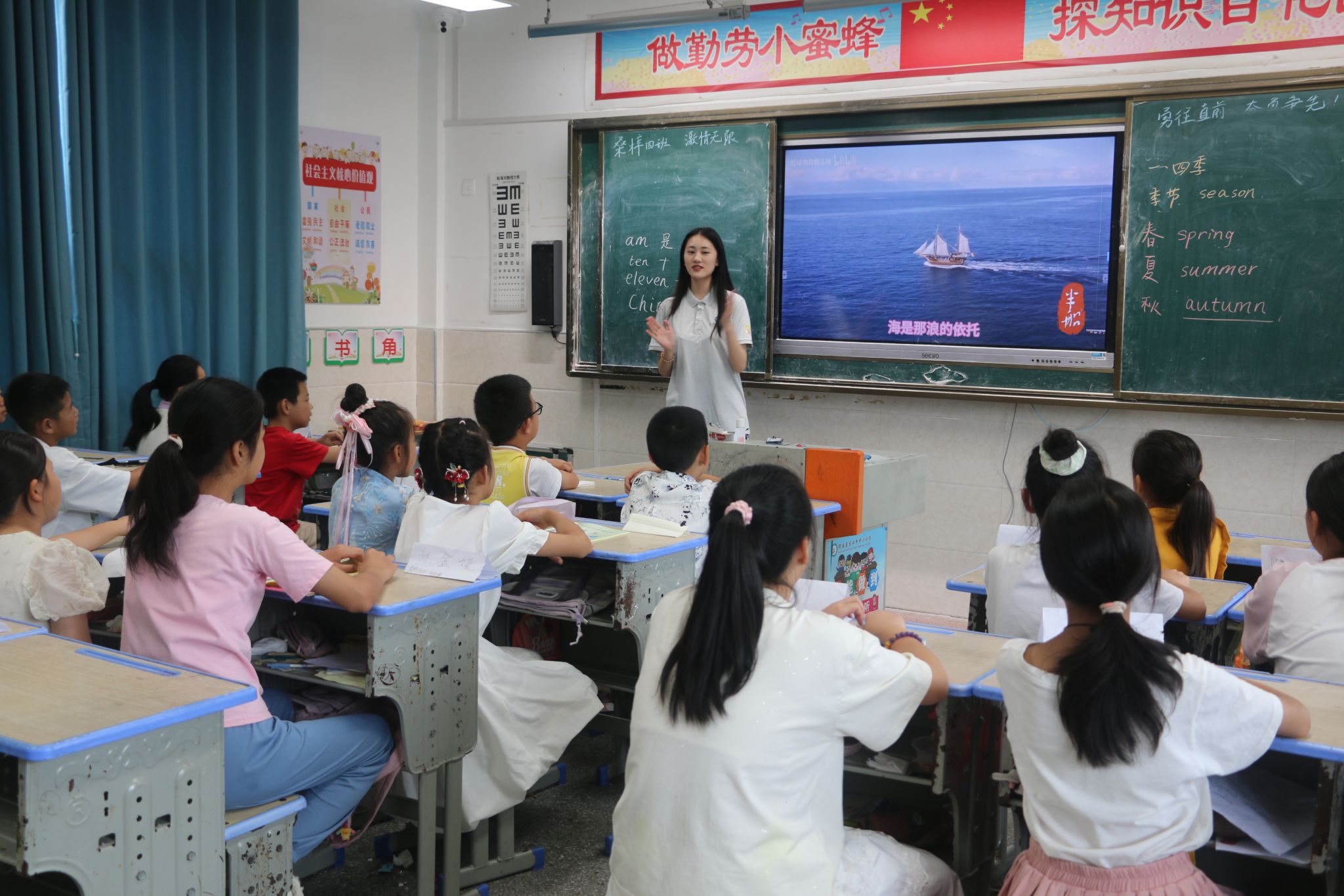 实践队队员教唱《我和我的祖国》 尹卓摄