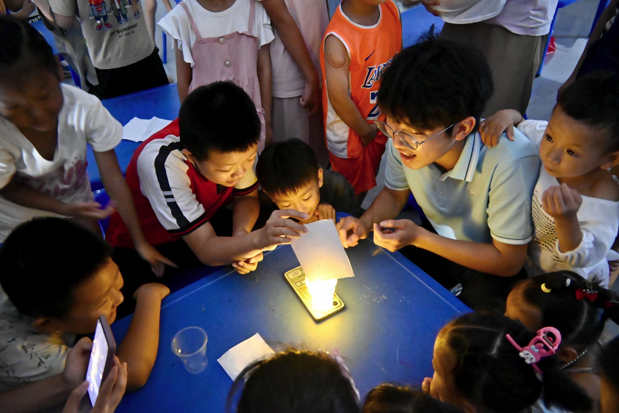 支教老师在和现场学生进行趣味实验 胡泰山摄