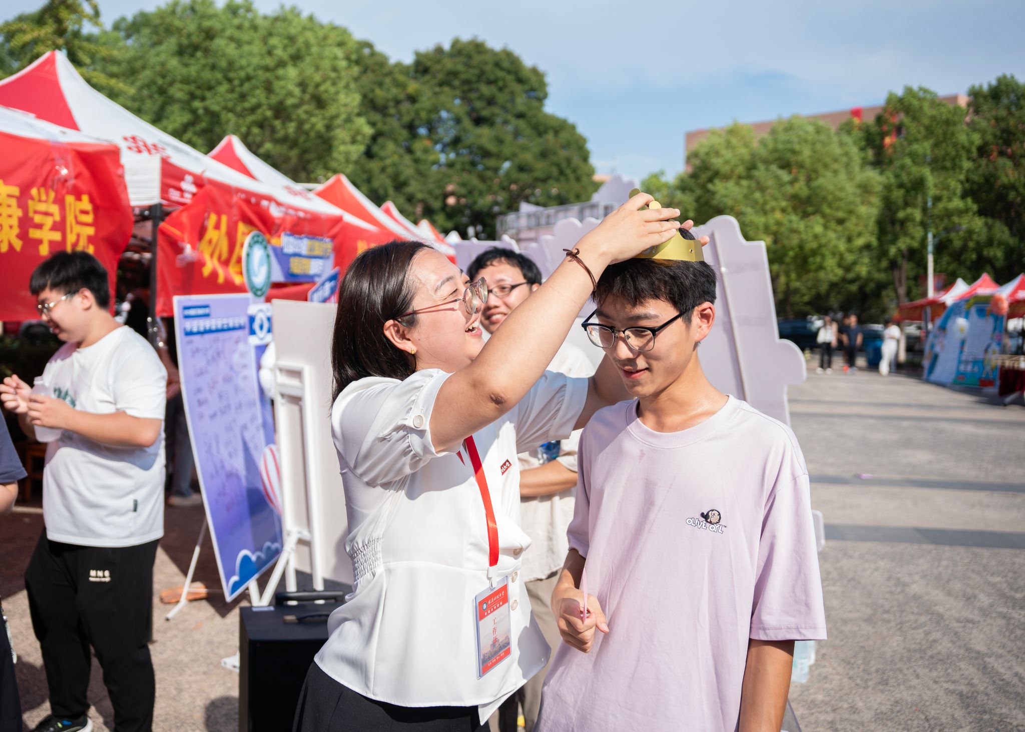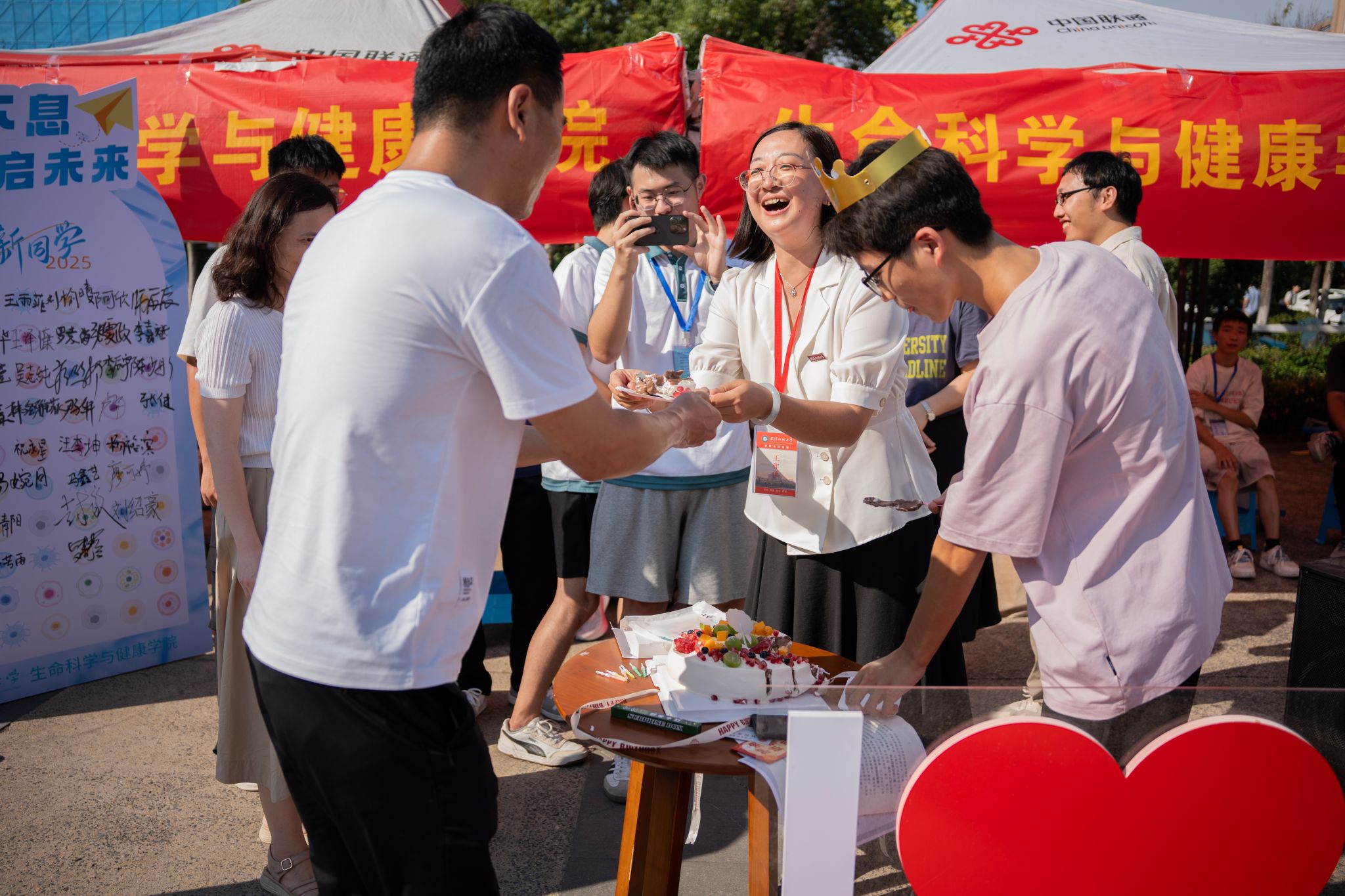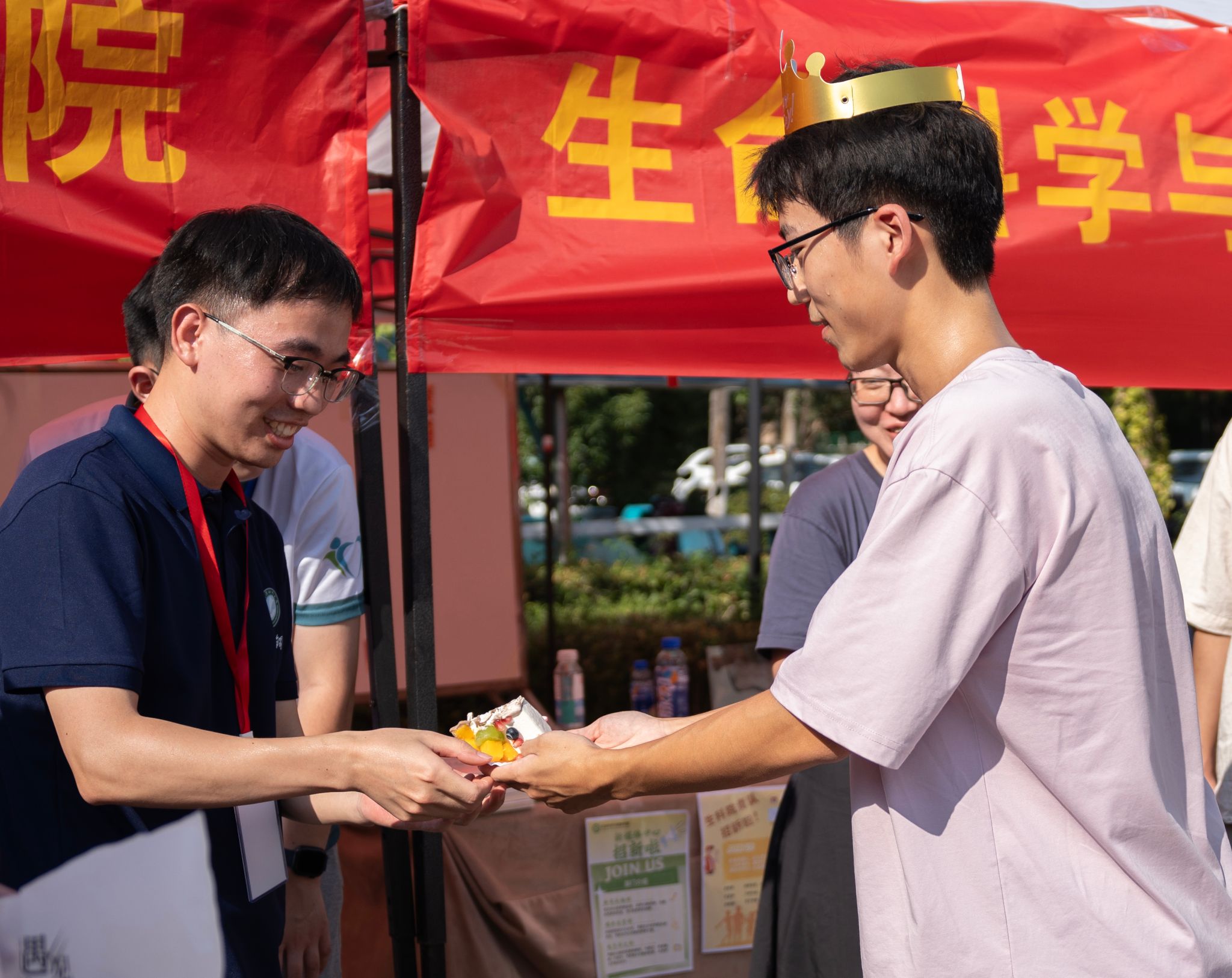 生科院老师为生日的新生带上生日帽 张贝贝摄
