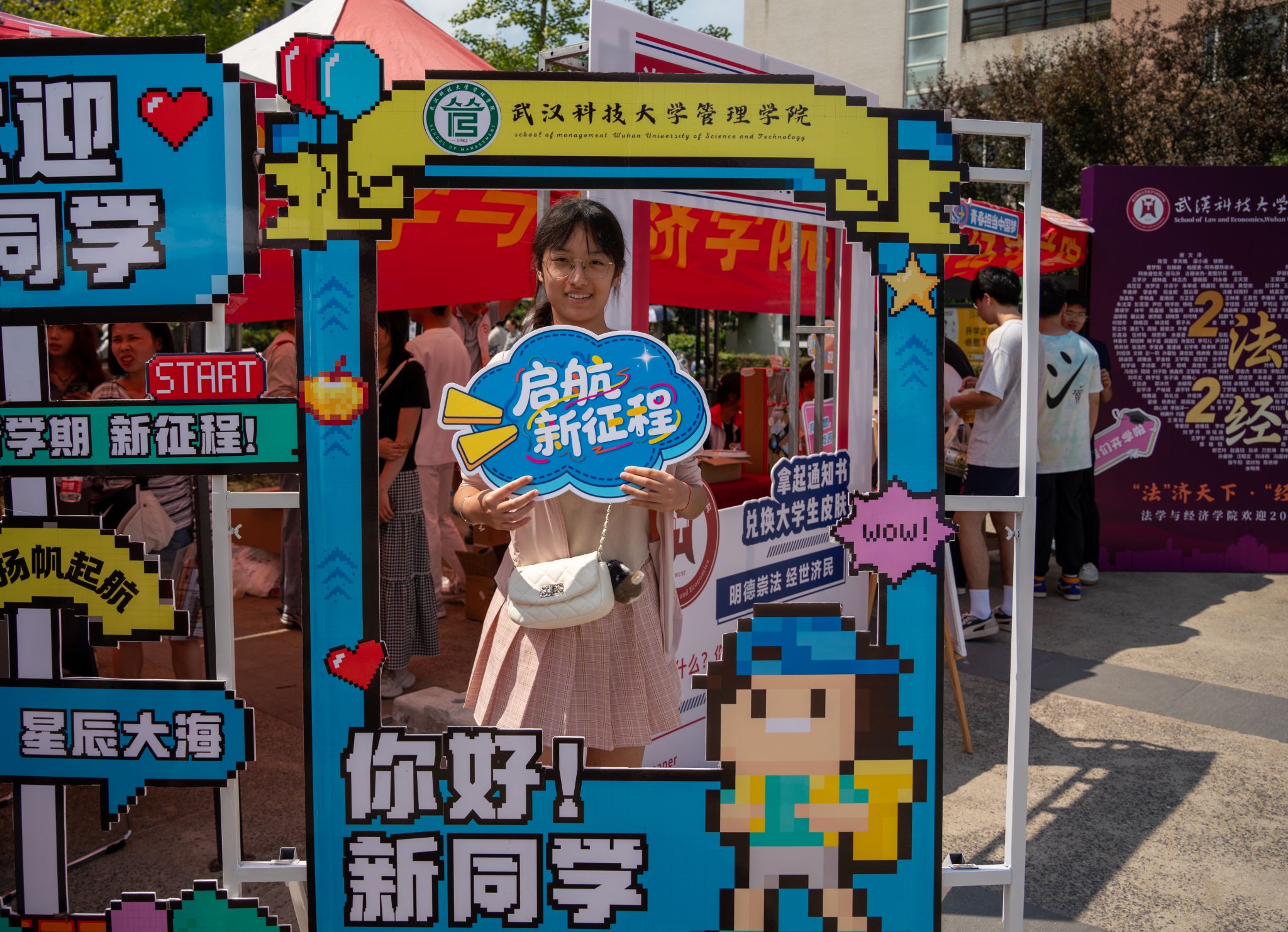 电子信息学院新生在签名墙留下自己名字 高文帅摄