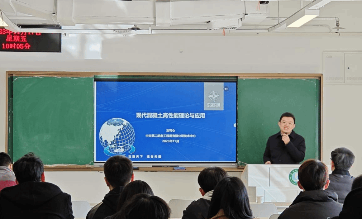 武科大网讯(通讯员李春艳)为加强学术交流,拓宽学术视野,11月17日上午,中交第二航务工程局有限公司二级专业总工程师、技术中心材料技术专家刘可心应邀为我院师生作题为“现代混凝土高性能理论与应用”的学术报告。中交第二航务工程局有限公司技术中心混凝土材料研究室主任陈飞翔应邀参加。我校城市建设学院副院长朱红兵、结构所所长廖宜顺等近百名师生参会,本次报告会由廖宜顺主持。